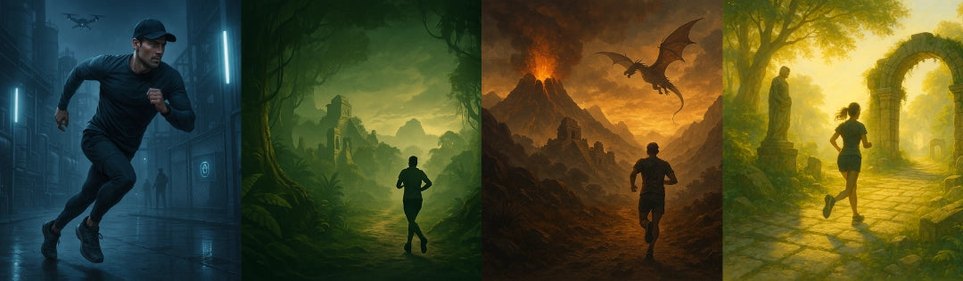 „Viele von uns kennen es: Beim Joggen lässt die Motivation schnell nach, weil es eintönig wird. Genau deshalb haben wir Laufgeschichten entwickelt: spannende Audio-Abenteuer mit Musik im richtigen Tempo, die aus jedem Lauf ein Erlebnis machen. Ob 5 km, 10 km, Intervalltraining oder Dauerlauf – Du bekommst Motivation, Abwechslung und ein Lauftraining, das Dich Schritt für Schritt voranbringt.“