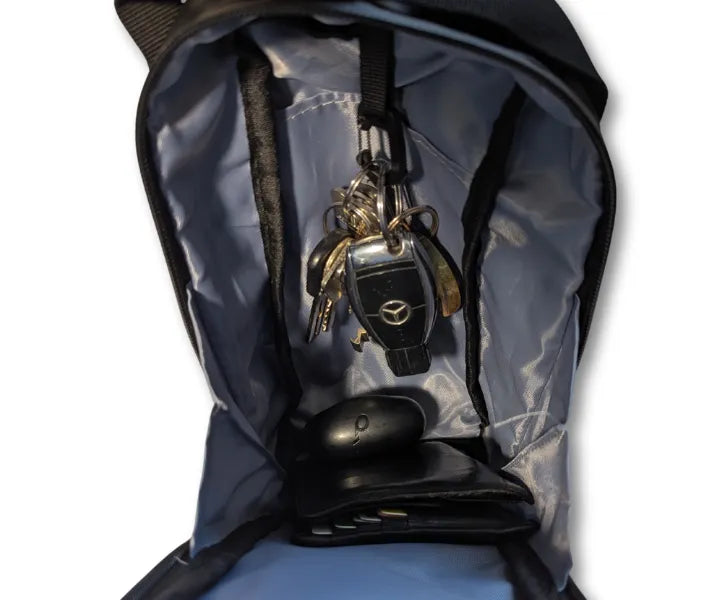 Mit der durchdachten Reißverschlusstasche, praktischen Organisationsfächern, einem Schlüsselanhänger und dem Flaschenfach ist alles sicher verstaut und sofort griffbereit.