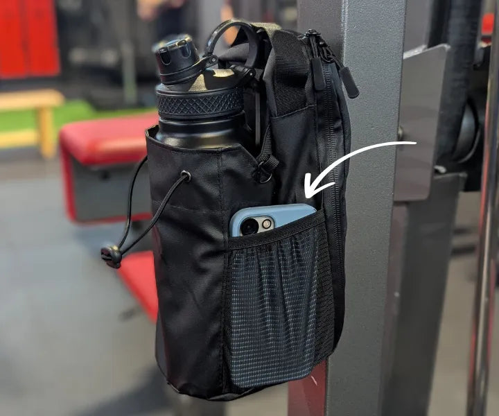 GYMHELD™ bietet Platz für Dein Smartphone, Schlüssel, Kopfhörer, Mitgliedskarte und kleinere Fitness-Gadgets. Mit cleveren Organisationsfächern, Schlüsselanhänger und Flaschenhalterung hast Du alles geordnet und griffbereit.